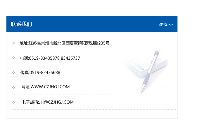 傳真:0519-83435688    郵編:213135    網址:WWW.czjhgj_com.tjtsxl.com    電子郵箱:JH@czjhgj_com.tjtsxl.com